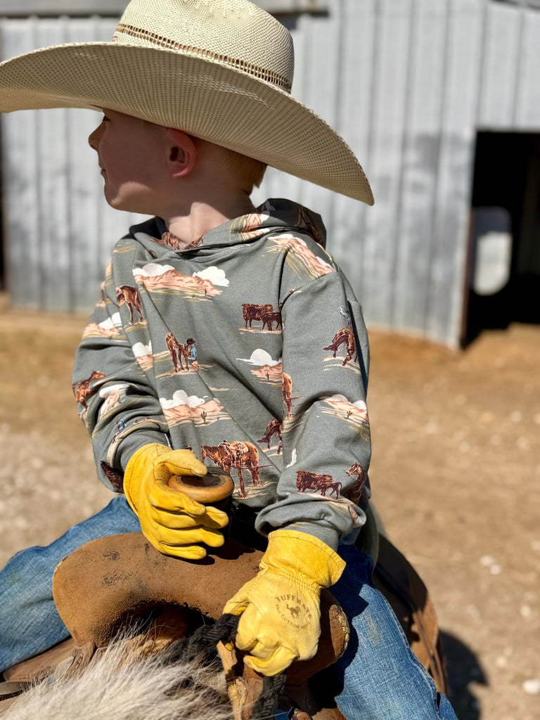 This extra soft cotton hoodie features an exclusive pattern on a very pretty teal color! Fits true to size with stretch.